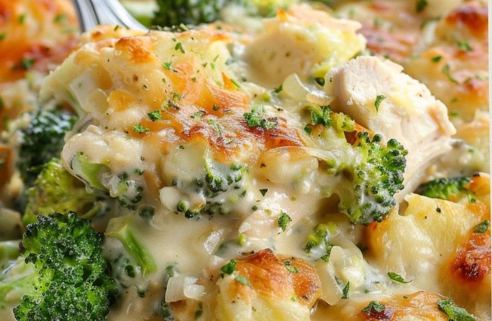 Baked Potato Chicken and Broccoli Casserole is a hearty, comforting dish that combines tender chicken, fluffy baked potatoes, and crisp-tender broccoli in a creamy, cheesy sauce. It’s an easy all-in-one meal that’s perfect for busy weeknights or family dinners.