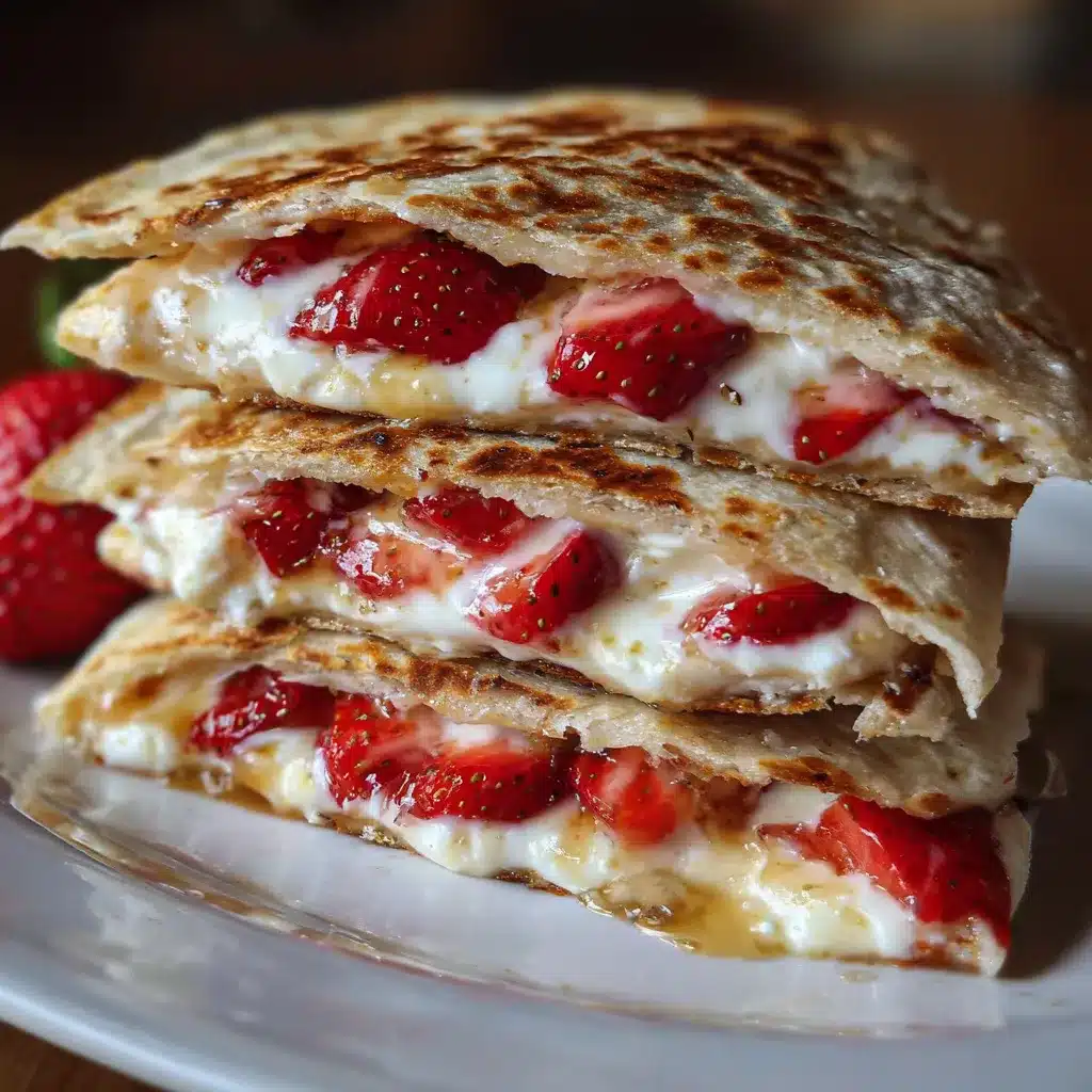 Savor delectable strawberry cream cheese quesadillas a treat blending sweet strawberries and creamy cheese in crispy tortillas Perfect for any dessert craving